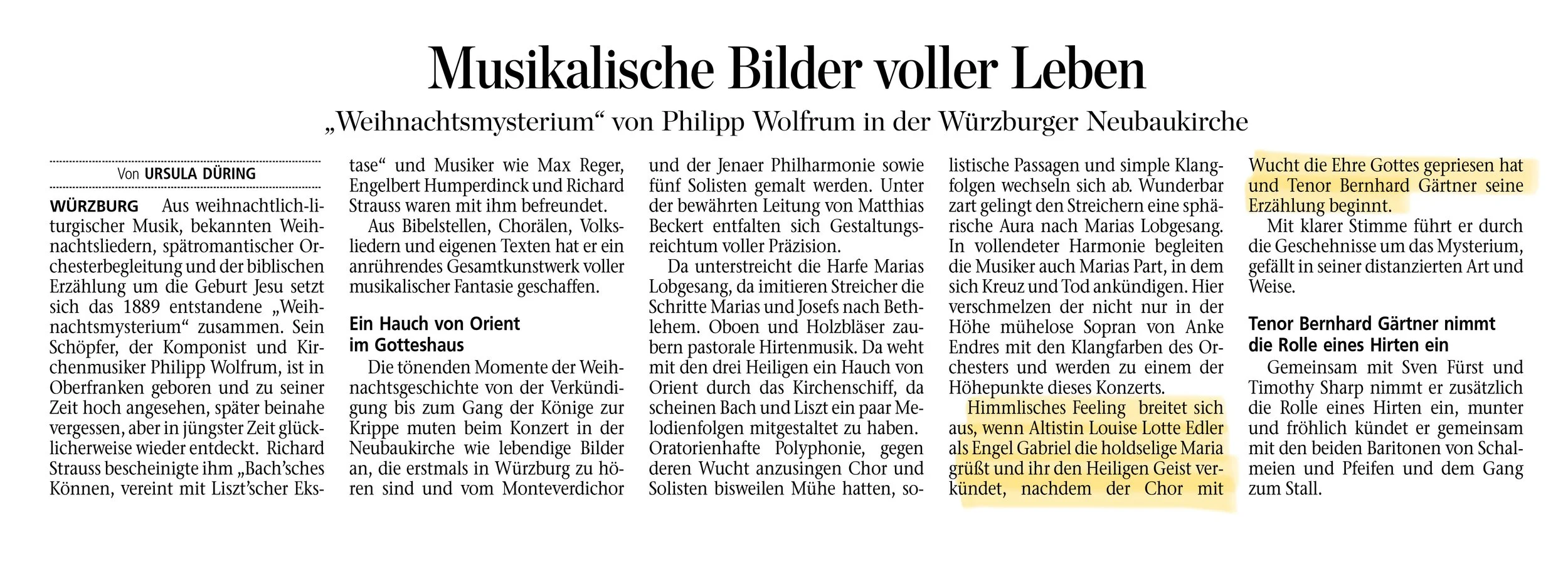 Die in Mannheim geborene Altistin Louise Lotte Edler studierte bei Prof. Hanno Müller-Brachmann an der HfM Karlsruhe. Sie absolvierte ihren Master in Konzertgesang mit Auszeichnung und ist nun als freischaffende Sängerin tätig. Seit 2021 wird ihre sängerische Ausbildung von Daniela Sindram komplementiert.